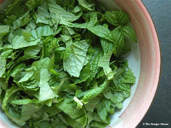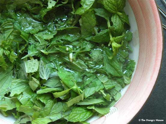 Stick the mint in a bowl or other heatproof container and set it aside while you make the sugar syrup.