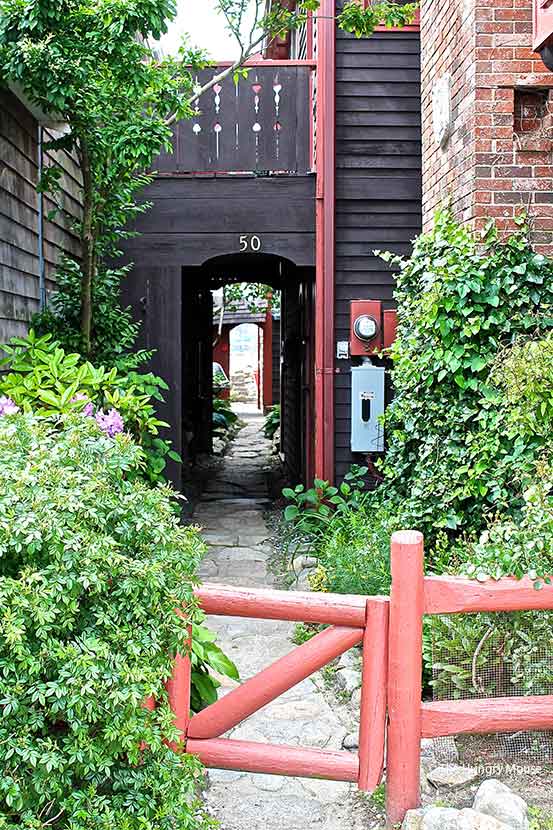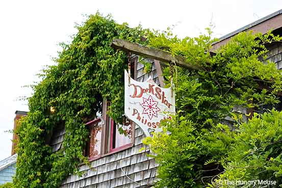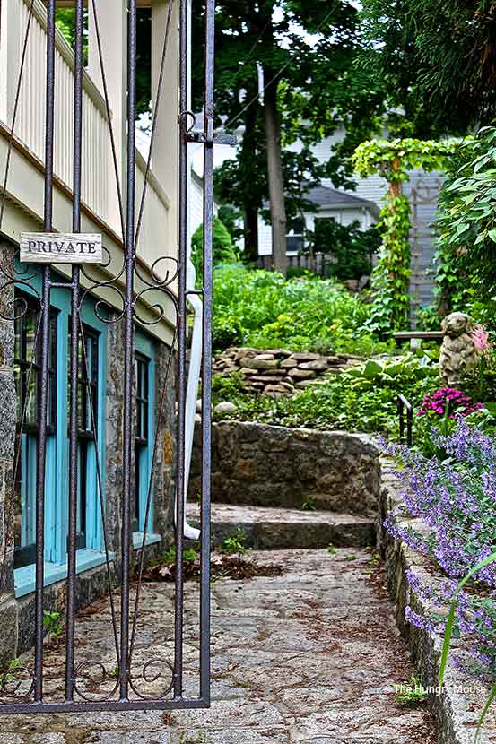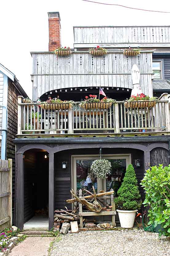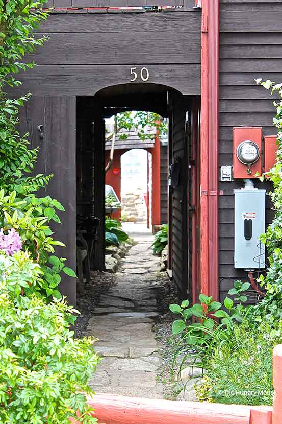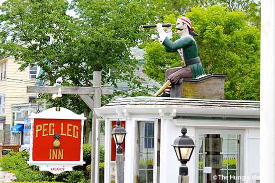 Because it’s the beginning of the summer tourist season, we had to circle a bit to find parking. We wound up with a street spot by this little beach, and this fantastic, ocean-themed inn.