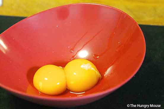 - Grab your egg yolks. Slide them into a large bowl. Drizzle in the cold water slowly, whisking as you go to emulsify the yolks.