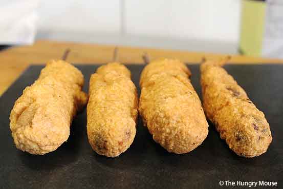 - And…voila! Homemade corn dogs, just like you used to get at the county fair. Serve hot out of the fryer.