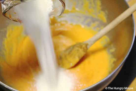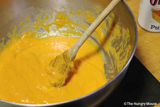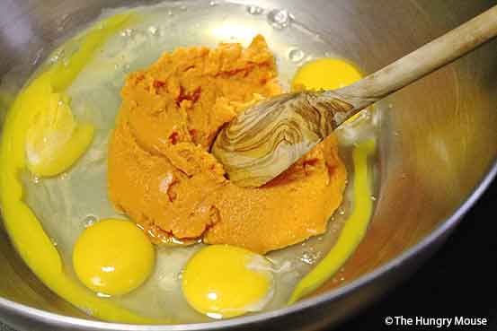 - Put the eggs and pumpkin in a large bowl and mix until uniform.