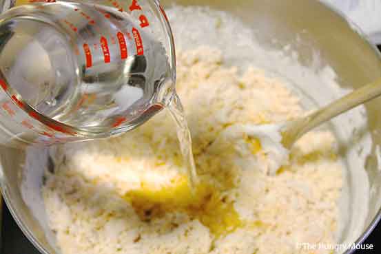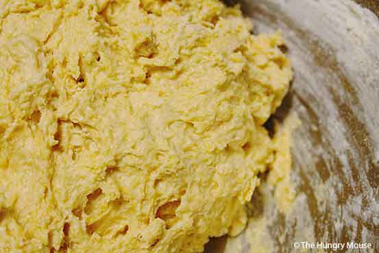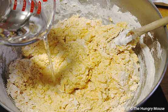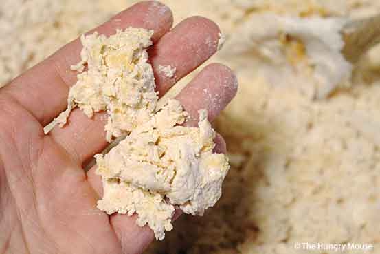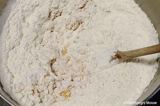 - Add the salt and flour. Mix until well incorporated. The dough will be raggy and on the dry side, kind of like biscuit dough. That’s just fine.
