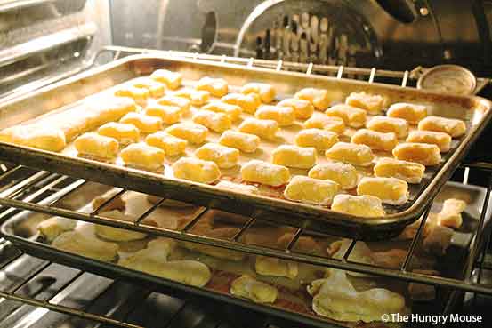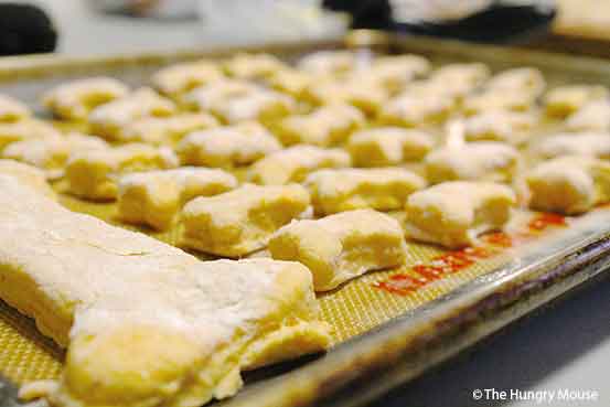 - After 20 minutes, yank the pans out of the oven and flip the biscuits over.