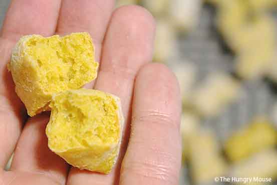 These biscuits are slightly chewy, though if you baked them a little longer, I’m sure they’d crunch right up. If you do that, just keep an eye on them when they’re in the oven.