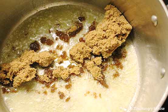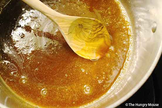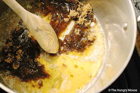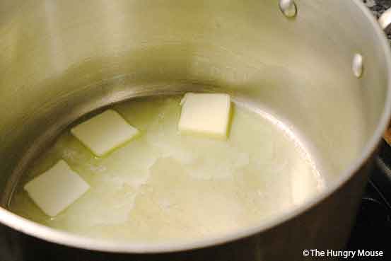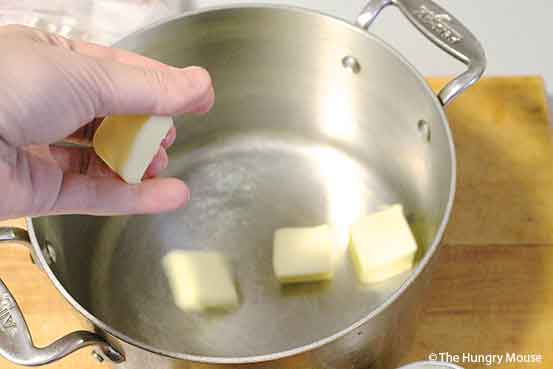 Toss the butter in a heavy-bottomed, medium-sized pot. (The heavy bottom will help keep the sugar from scorching.)