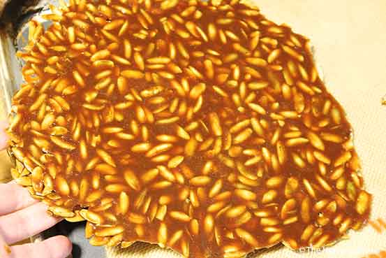 For this brittle, make sure you get raw, shelled pumpkin seeds, sometimes labeled “pepitas.”