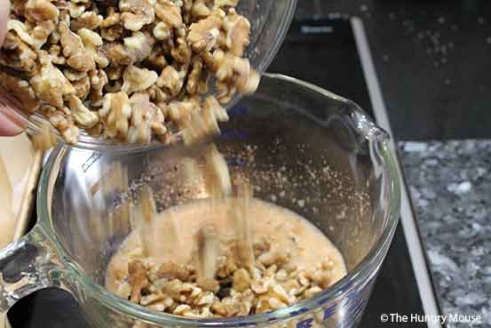 - Toss the walnuts into the egg white mixture.