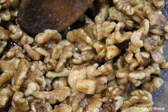 - Mix well to coat the nuts.