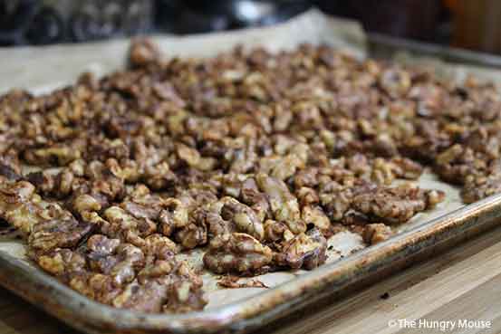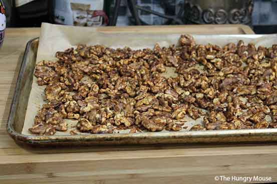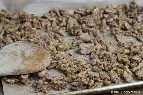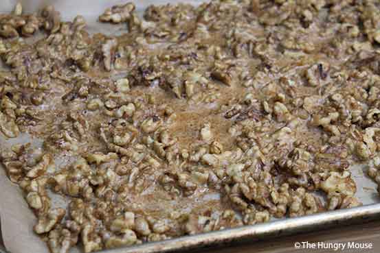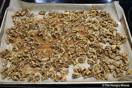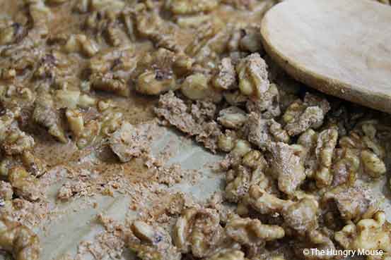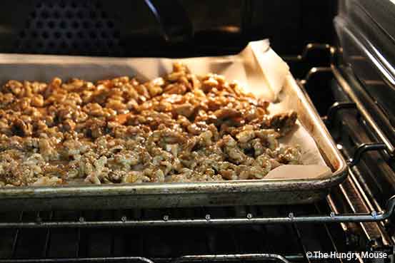 Your nuts should be lightly browned and nicely crisped. If they’re not, stick them back in for a few minutes.