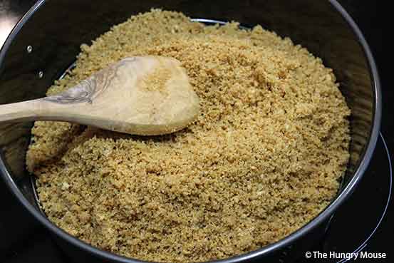 - MAKE THE GRAHAM CRACKER CRUST: PUT THE GRAHAM CRACKER CRUMBS AND SUGAR IN A LARGE MIXING BOWL. MELT THE BUTTER IN THE MICROWAVE OR ON THE STOVE IN A SMALL PAN OVER LOW HEAT. POUR INTO THE BOWL WITH THE CRUMBS AND SUGAR. STIR UNTIL THE CRUMBS ARE MOISTENED AND THE MIXTURE IS UNIFORM.