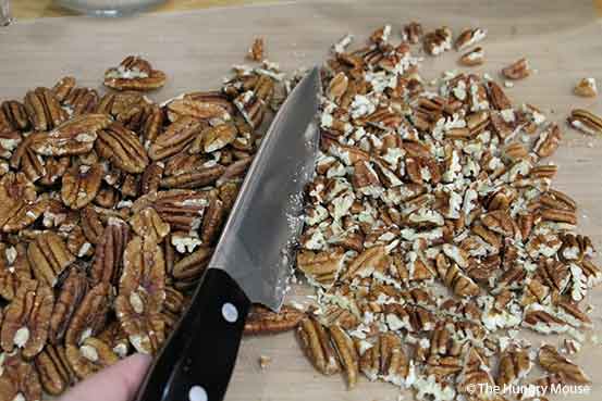 Coarsely chop the pecans. Toast them in a dry, nonstick skillet over medium-high heat, stirring frequently, until lightly brown and fragrant.