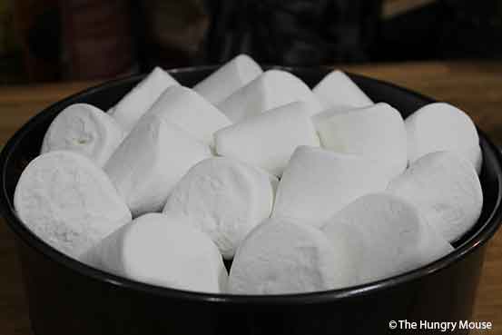 8 – 10 jumbo marshmallows (or about 15 – 20 large marshmallows), cut in half diagonally