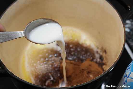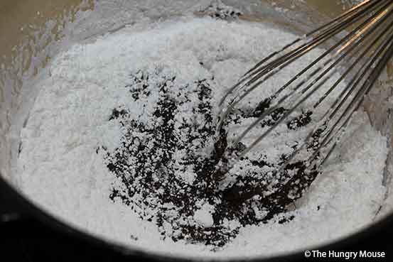 Toss in the cocoa powder and milk. Whisk to combine.