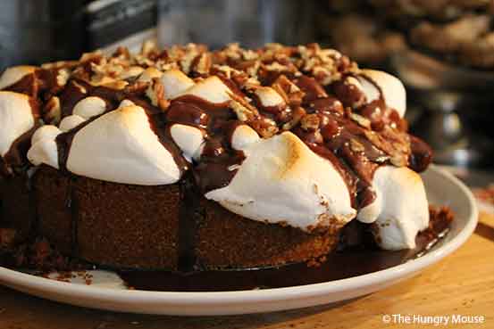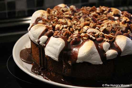 Gooey toasted marshmallows. Velvety chocolate sauce. Crunchy, toasted pecans.