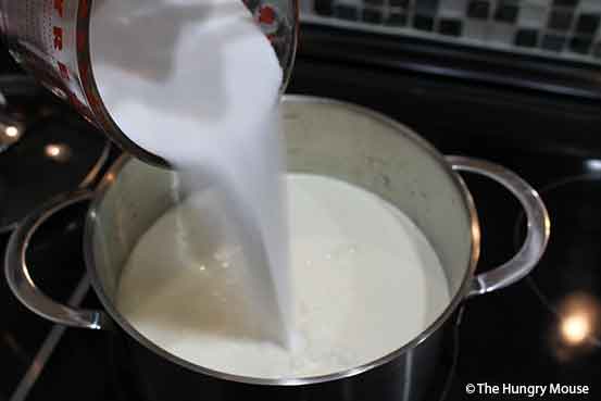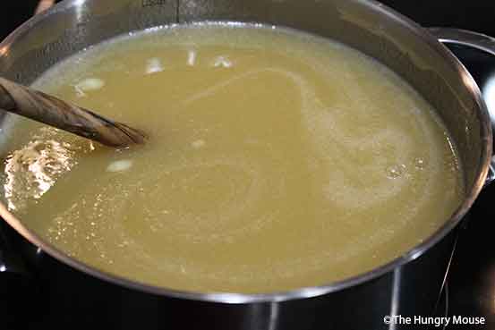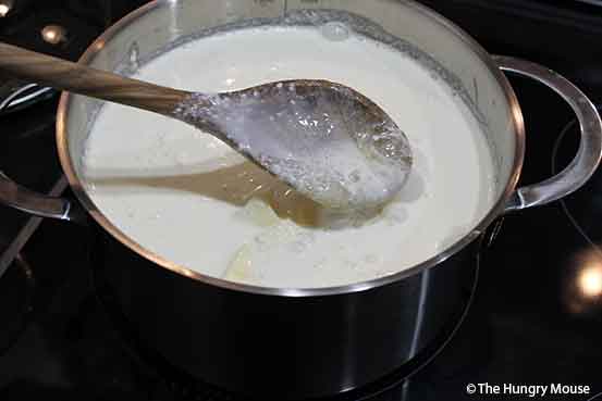 When the mixture hits 240-degrees F, remove the pot from the heat.