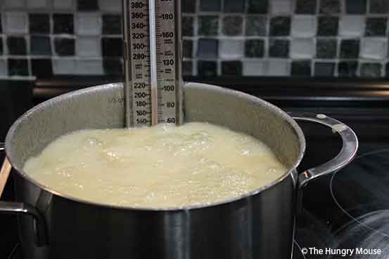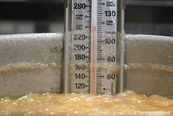 I cook these just to about 240-degrees F., which is right in the middle of soft-ball stage.