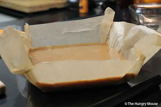 Leave the caramel on the counter to cool for about 12 hours, or until solid.