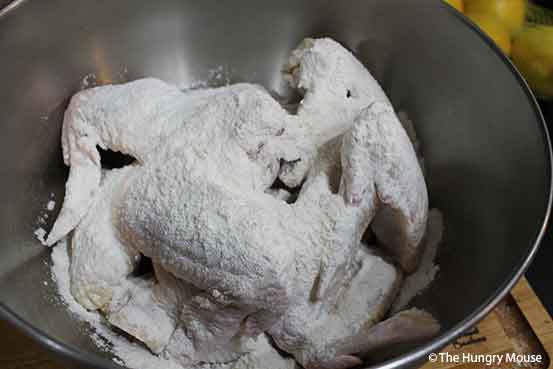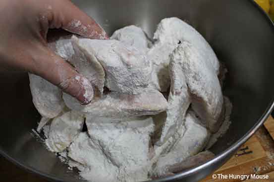 - Throw your chicken wings in a big bowl. Toss with olive oil to coat. Then, add the flour and salt and toss to coat.