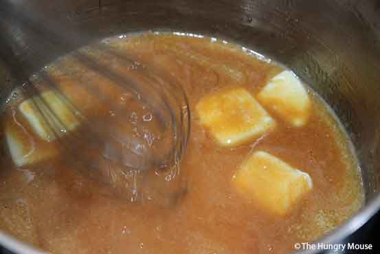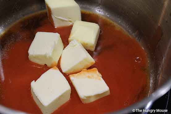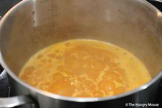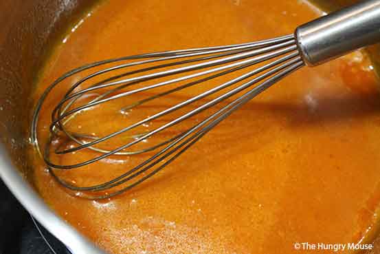 - Make the sauce: Put all of the sauce ingredients in a medium-sized pot. Bring to a simmer on the stove over medium-high heat, whisking frequently. Simmer for a few minutes uncovered.