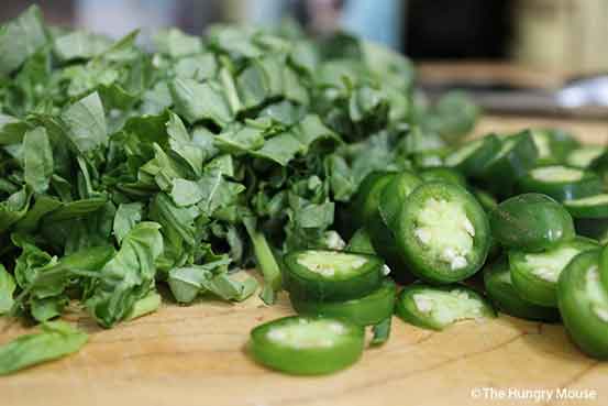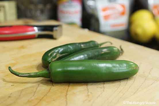 I love hot (like, set-your-face-on-fire hot) food, so I use at least 3 Serrano or Jalapeno chilis when I make this.