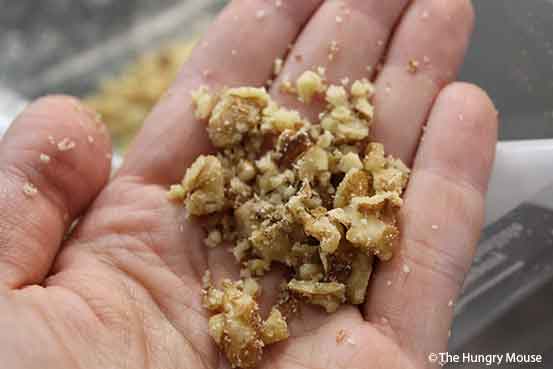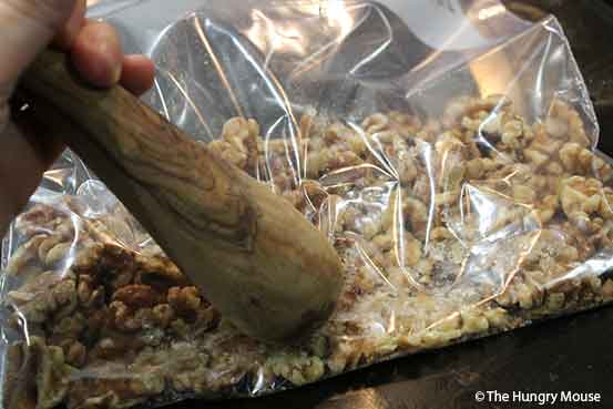 If you don’t buy your walnuts chopped, you’ll need to smash them up yourself.