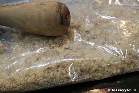 SO, I put them in a gallon-sized zip-top bag and bash them with a rolling pin or a wooden pestle.