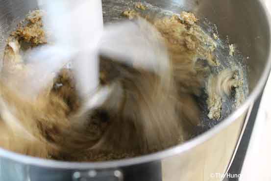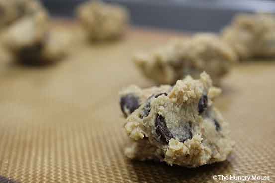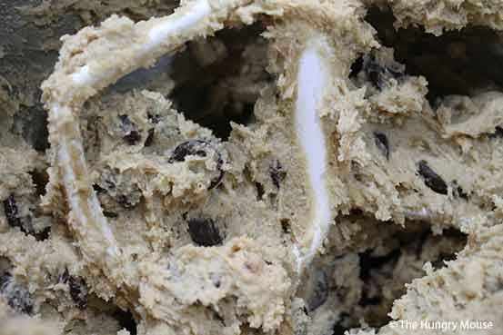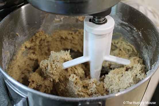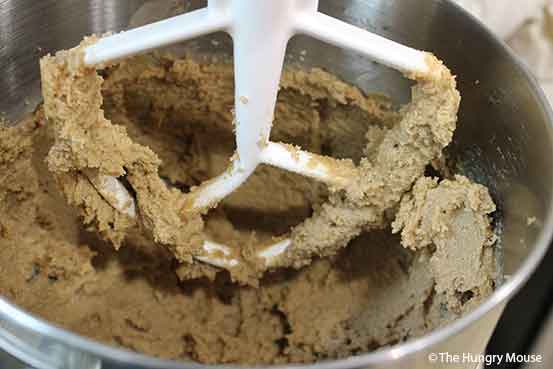 Just a note: Don’t beat the dough to death, you’ll make your cookies tough. When the dough is well combined (i.e. it looks uniform), stop.