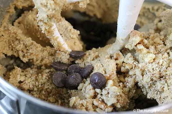 - Mix in the nuts and chocolate chips/chunks.