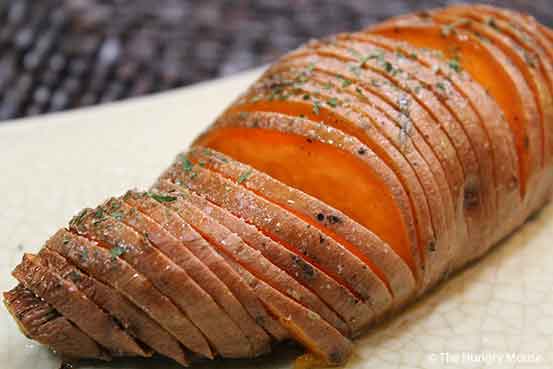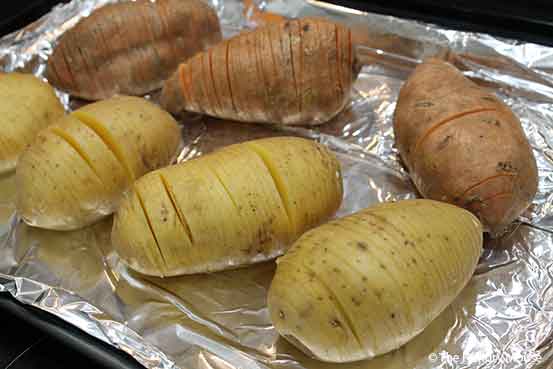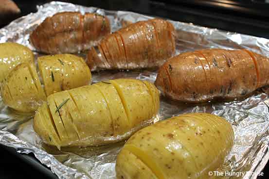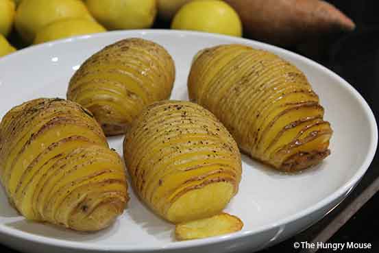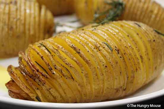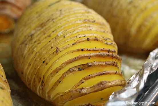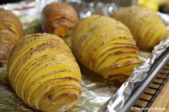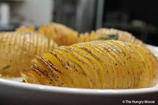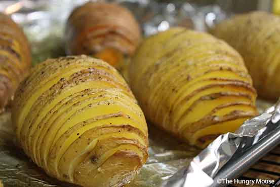Basically, they’re whole potatoes that you cut into slices (almost, but not quite all the way through) and bake.