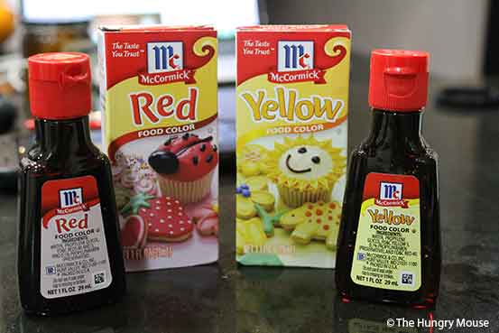 Add the yellow and red food coloring.