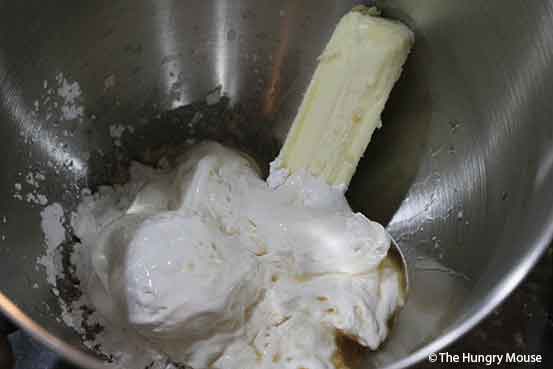 Put the butter, marshmallow fluff, powdered sugar, vanilla, and dark rum in the bowl of your stand mixer (or in a large mixing bowl if mixing by hand). Â