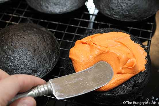 (Trust me on this. Warm cake + filling = a gooey, runny mess. It’s a horror show totally befitting Halloween…but way less fun to clean up after.)