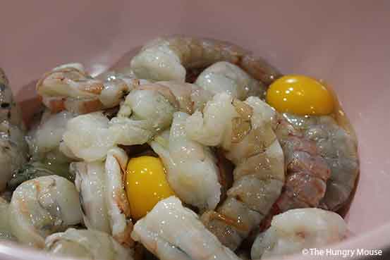 Put the shrimp in a large bowl. Add 2 whole egg plus one extra egg white.