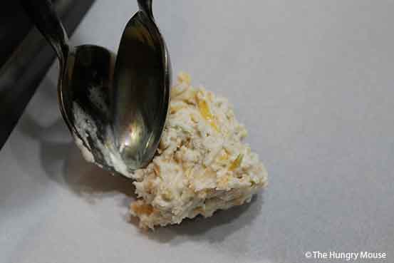 Grab two soup spoons. Scoop out a blob of dough on one spoon.